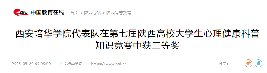 西安培华学院将以此次获奖为起点,持续深化心理健康教育工作。通过优化心理健康课程体系、丰富心理实践活动,帮助学生掌握情绪管理、压力应对技巧,塑造积极向上的心态,助力学生在成长道路上直面挑战、自信前行;同时充分发挥朋辈力量,加强心理委员、宿舍心理信息员等朋辈队伍建设,开展专业培训提升朋辈互助能力,形成“自助-互助-他助”的良性循环,让心理健康教育真正融入学生日常,共筑温暖有爱的心灵成长家园。