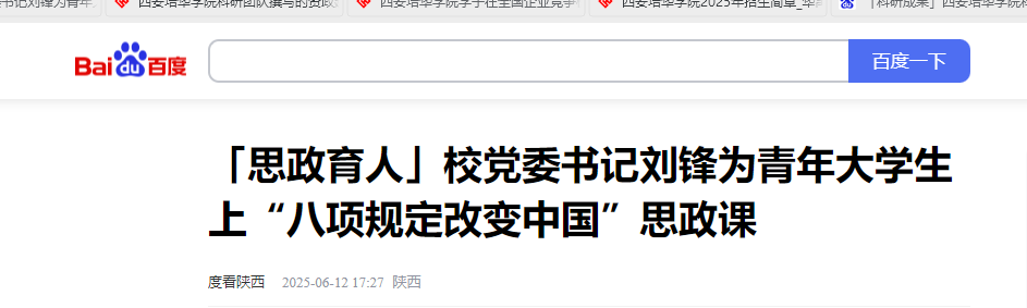 为推动学习贯彻习近平新时代中国特色社会主义思想和深入贯彻中央八项规定精神学习教育的持续深入开展,加强西安培华学院青年大学生的思想政治教育工作,6月5日,西安培华学院党委刘锋书记以“八项规定改变中国”为主题,在博远楼教室为2023级会计07班,2023级护理专业05、06班的学子上了一堂严肃而生动的思政课。