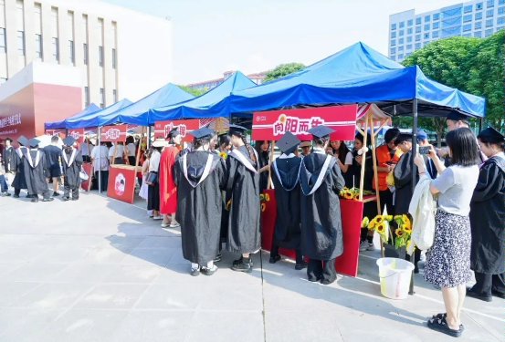 姜波理事长携校领导们,共同为优秀毕业生代表颁奖,西部计划志愿者整装齐备,怀揣理想踏上征途,向着辽阔远方进发;应征入伍者肩披荣耀绶带,眉宇间彰显着深厚的家国情怀;考研成功的学子紧握通知书,眼前铺展开璀璨的学术星途……