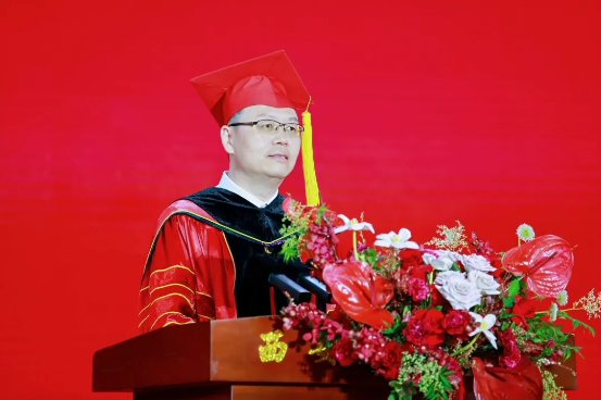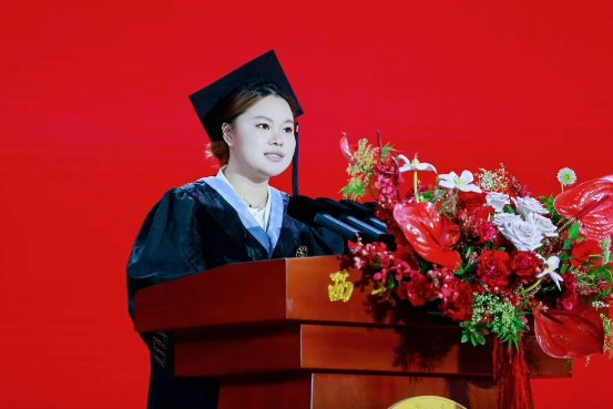 人文与国际教育学院副院长栾博强作为教师代表发言,他以“三个培华记忆”带领全体毕业生重温大学生活,并表示培华不仅传授知识,更赋予“博学、审问、笃行”的成长密码,塑造了学子们“立己达人”的培华风骨。他希望毕业生们要做一粒“向下扎根的种子”,做一座“融通古今的桥梁”,做一束“照亮他人的光源”。他号召大家勇担“强国有我,功成有我”的时代使命。
