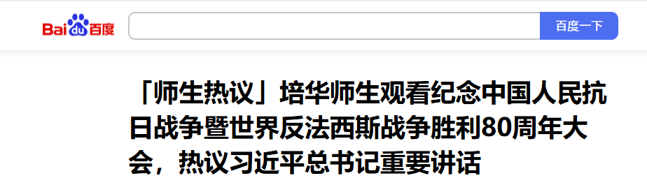 威武帅气、整齐划一的受阅方队令培华师生心潮澎湃!纪念中国人民抗日战争暨世界反法西斯战争胜利80周年大会在全校师生中引发热烈反响。