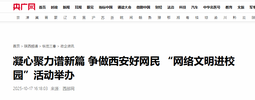 为激励广大网民自觉提升网络素养,善用网络传播正能量,以理性之声、青春之笔,共同描绘西安文明形象,争做有责任感、有法治意识、有奉献精神的西安好网民。10月16日下午,由西安市委网信办主办的“网络文明进校园 学子同心树新风”——2025 争做西安好网民工程活动在西安培华学院举行。