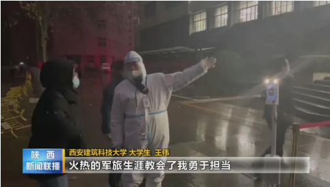 2021年12月31日,中央电视台《新闻联播》采访报道了西工大学生志愿者石雯萍。她平日里非常热爱公益事业。此次西安疫情暴发后,石雯她和很多同学一样,第一时间响应学校号召,投入到了志愿者队伍当中。