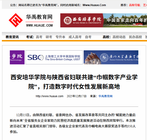 在共建“巾帼数字产业学院”的蓝图下,西安培华学院女子学院以“专业赋能+以赛促学”双轮驱动,将数字教育的种子播撒到行业一线、乡村田野,用实打实的成果勾勒女性数字发展的清晰路径。