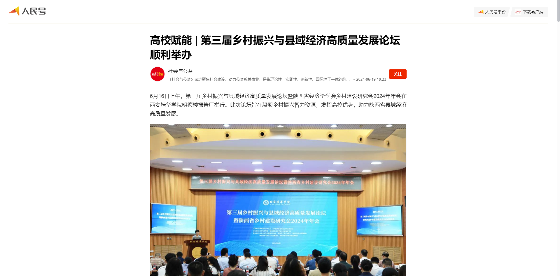 6月16日上午,第三届乡村振兴与县域经济高质量发展论坛暨陕西省经济学学会乡村建设研究会2024年年会在西安培华学院明德楼报告厅举行。此次论坛旨在凝聚乡村振兴智力资源,发挥高校优势,助力陕西省县域经济高质量发展。