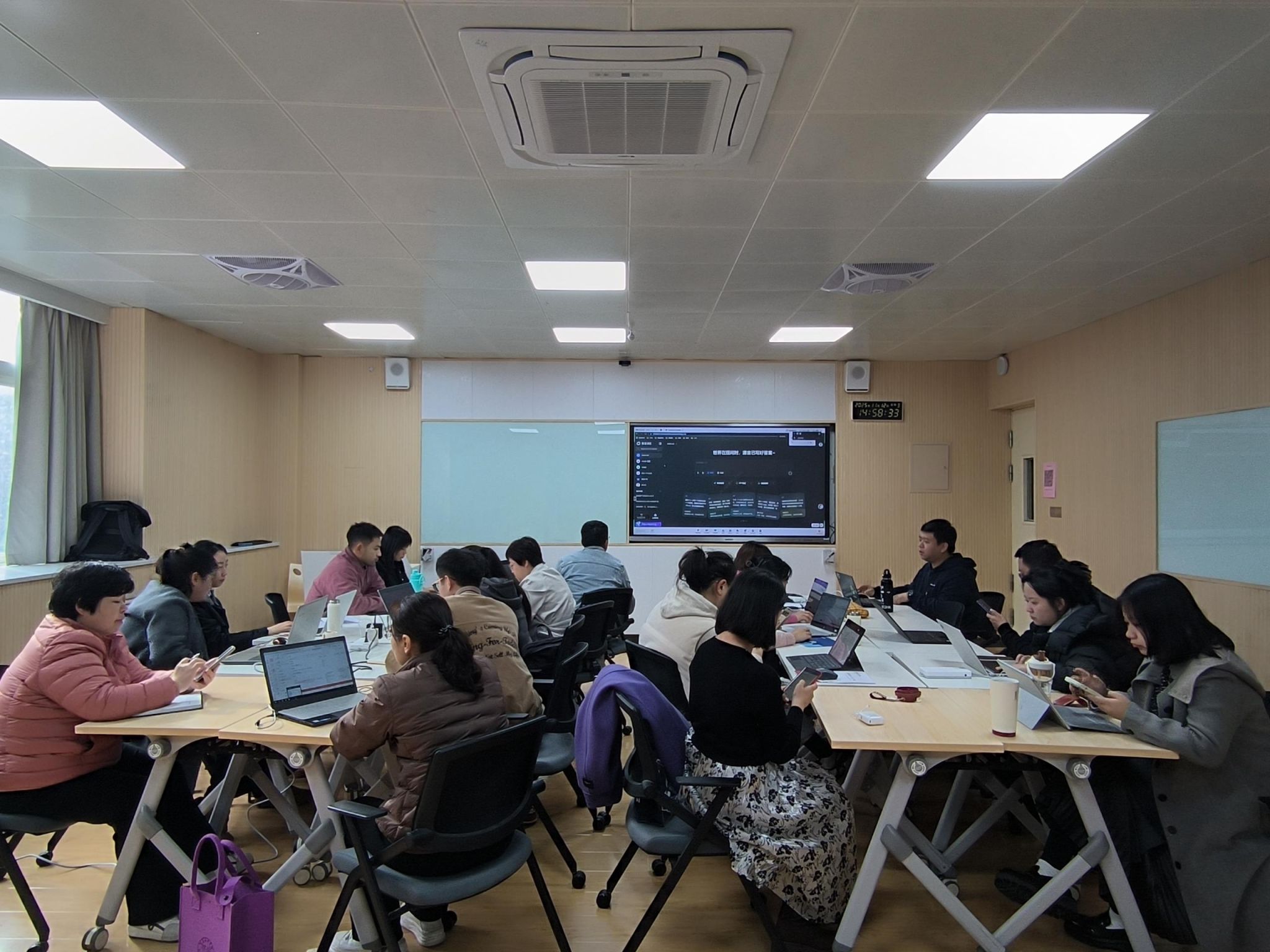 2024年11月12日下午,西安培华学院教师教学发展中心成功举办了第一期“领学π·数智工坊”,即主题为“赋能教育新生态:AI技术重塑备课全链路”的教学研修班。本次活动在博远楼2209教室举行,由智能科学与工程学院李永成老师、传媒与设计学院杜萍老师、文学院邬鹏老师领学,吸引了来自二级学院的20余名教师参与。