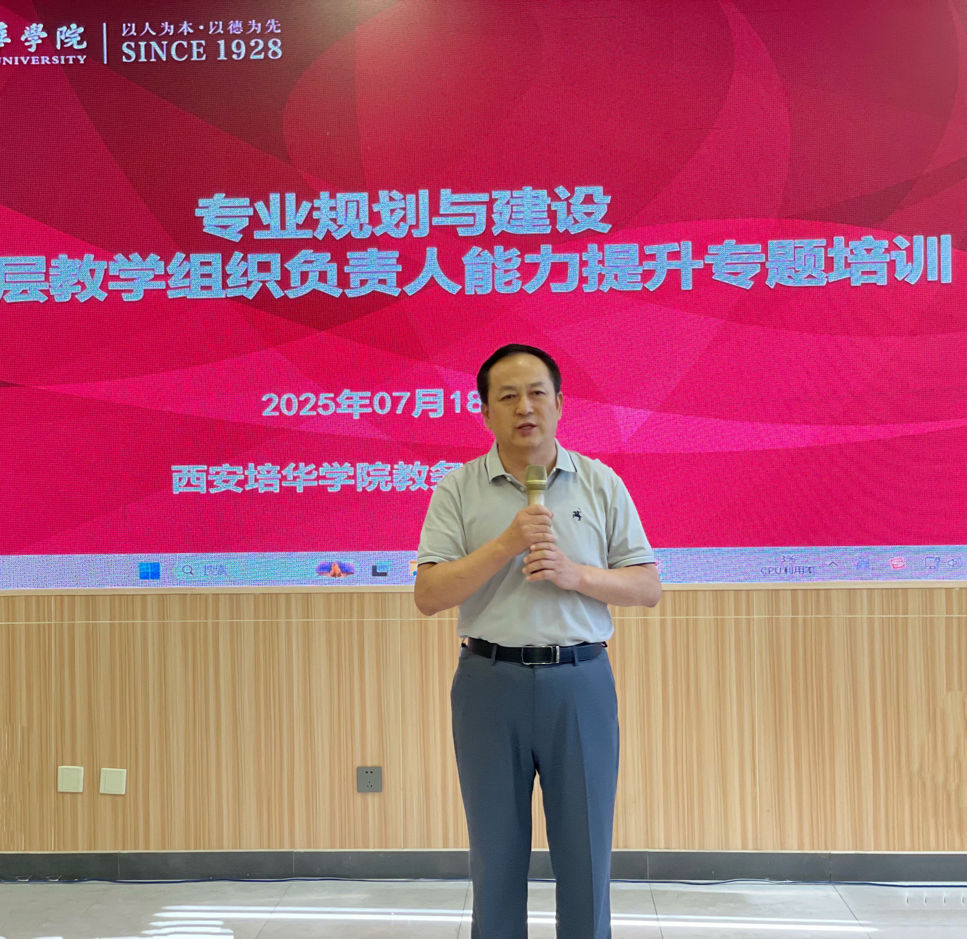 2025年7月18日,我校在恒友楼团辅室召开专业规划与建设暨基层教学组织负责人能力提升专题培训会,常务副校长胡俊生、教务管理中心主任铁卫及副主任王琳、各二级学院教学副院长、系主任、专业带头人及骨干教师共70人参加会议。会议由教务管理中心主任铁卫主持,围绕高校专业设置政策解读、专业规划方案研讨及下一步工作部署展开,旨在为2026年专业申报与学科发展奠定基础。