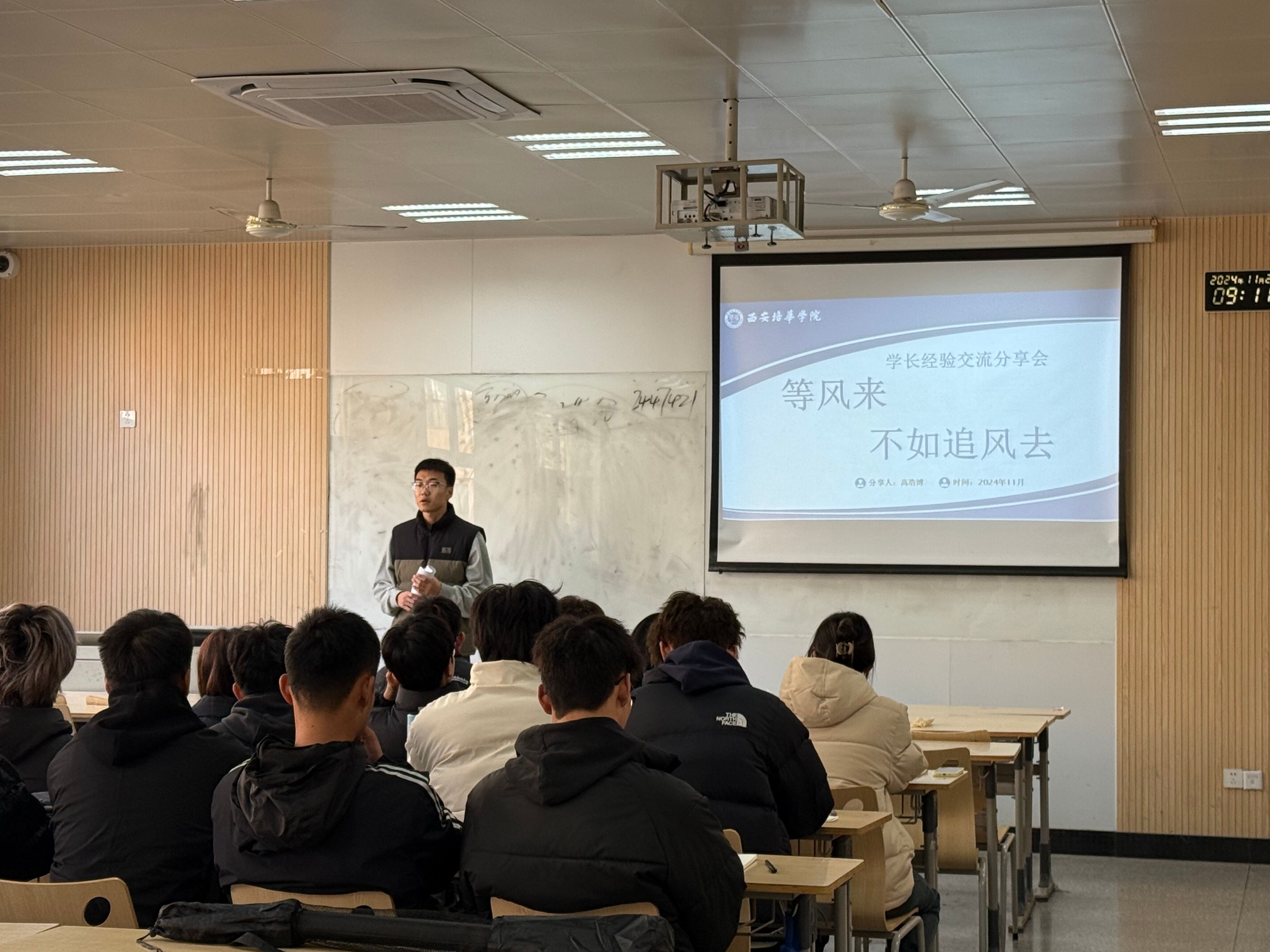 体育学院国家奖学金候选人高浩博同学为学弟学妹们进行了题为“等风来,不如追风去”的分享。