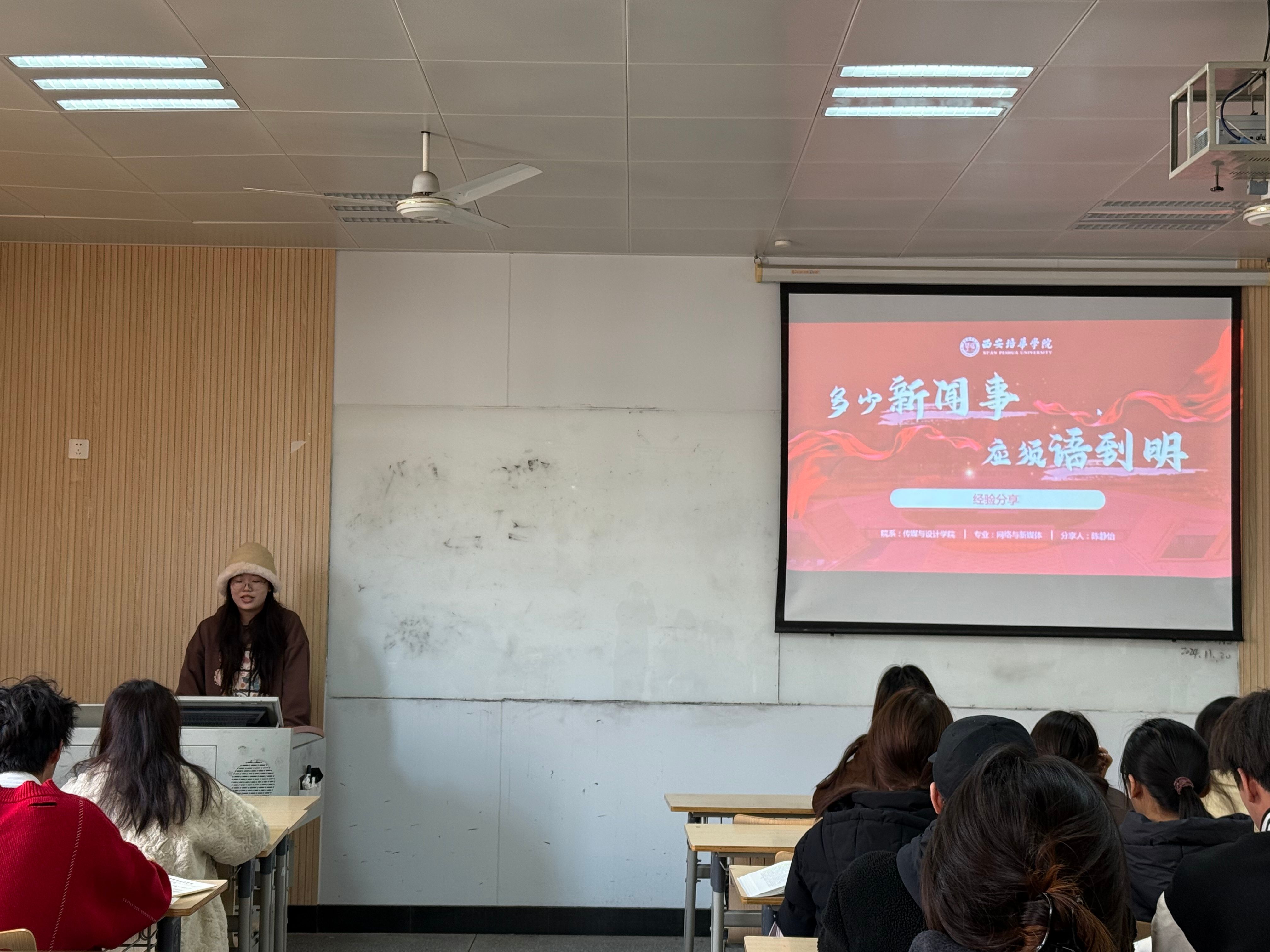 传媒与设计学院国家奖学金候选人陈静怡同学为学弟学妹们进行了题为“多少新闻事,应须语到明”的分享。