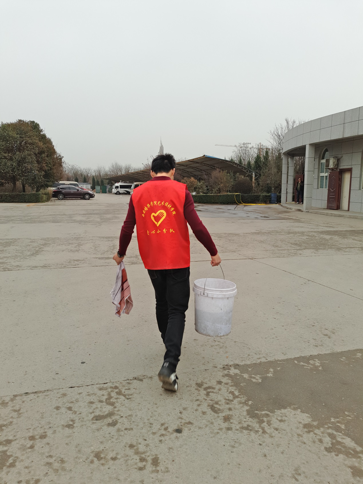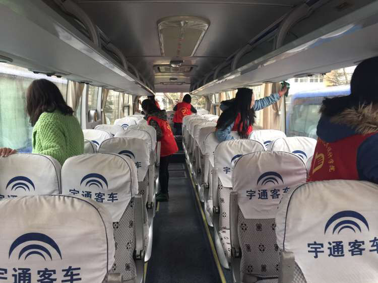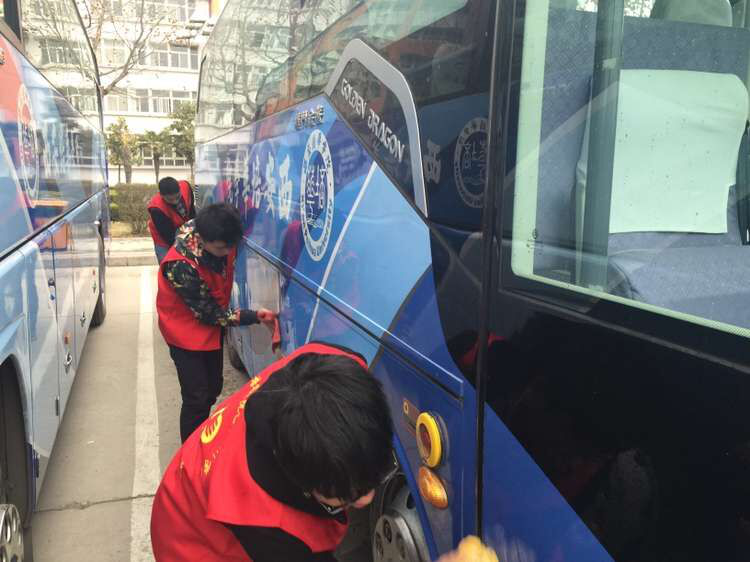 3月4日下午13时,在预先的组织和安排下,即使天空飘着细雨但各义工还是早早地来到擦车地点,身着红色马甲开始了爱心擦车活动。通过大家的努力,没多久便看到了焕然一新的校车。