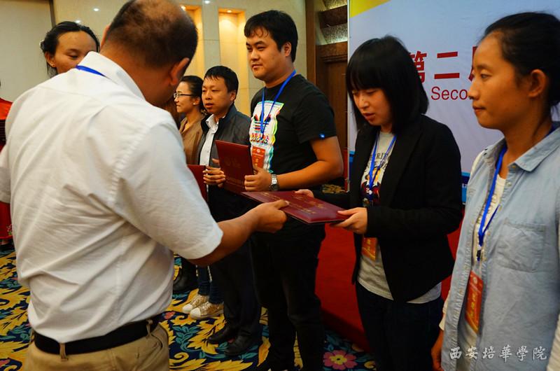我院教师曹榛和学生代表李倩上台领奖