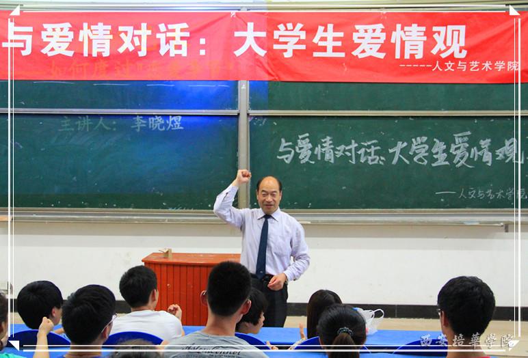 为帮助同学们树立正确的爱情观,6月7日晚,由人文与艺术学院主办的“与爱情对话,大学生爱情观”大学生心理健康大讲堂专题讲座在J201教室举行。讲座邀请到了国家心理咨询师、中国心理卫生协会大学生心理咨询专业委员会委员、陕西省心理咨询师、省心理卫生协会会员、西安文理学院心理咨询中心主任李晓煜教授担任主讲。我院学生科负责人、团总支书记王旭东老师及两百余名学生聆听了本场讲座。