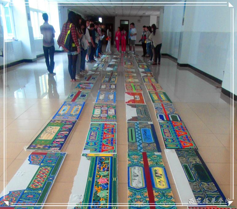 2013年5月31日我院环境艺术设计专业在二号教学楼楼东厅成功举办了《沥粉贴金·流光溢彩》—古建筑彩绘作品展,此次作品展展出的作品内容丰富,形式多样,吸引了很多老师和学生的驻足观赏,并收到了他们的一致好评,虽然仅仅展出仅仅只有一天,但它的效果和意义已经得到了同学、老师的普遍认可和赞赏,同时也为我院校园文化建设增加了一道亮丽的风景线。
