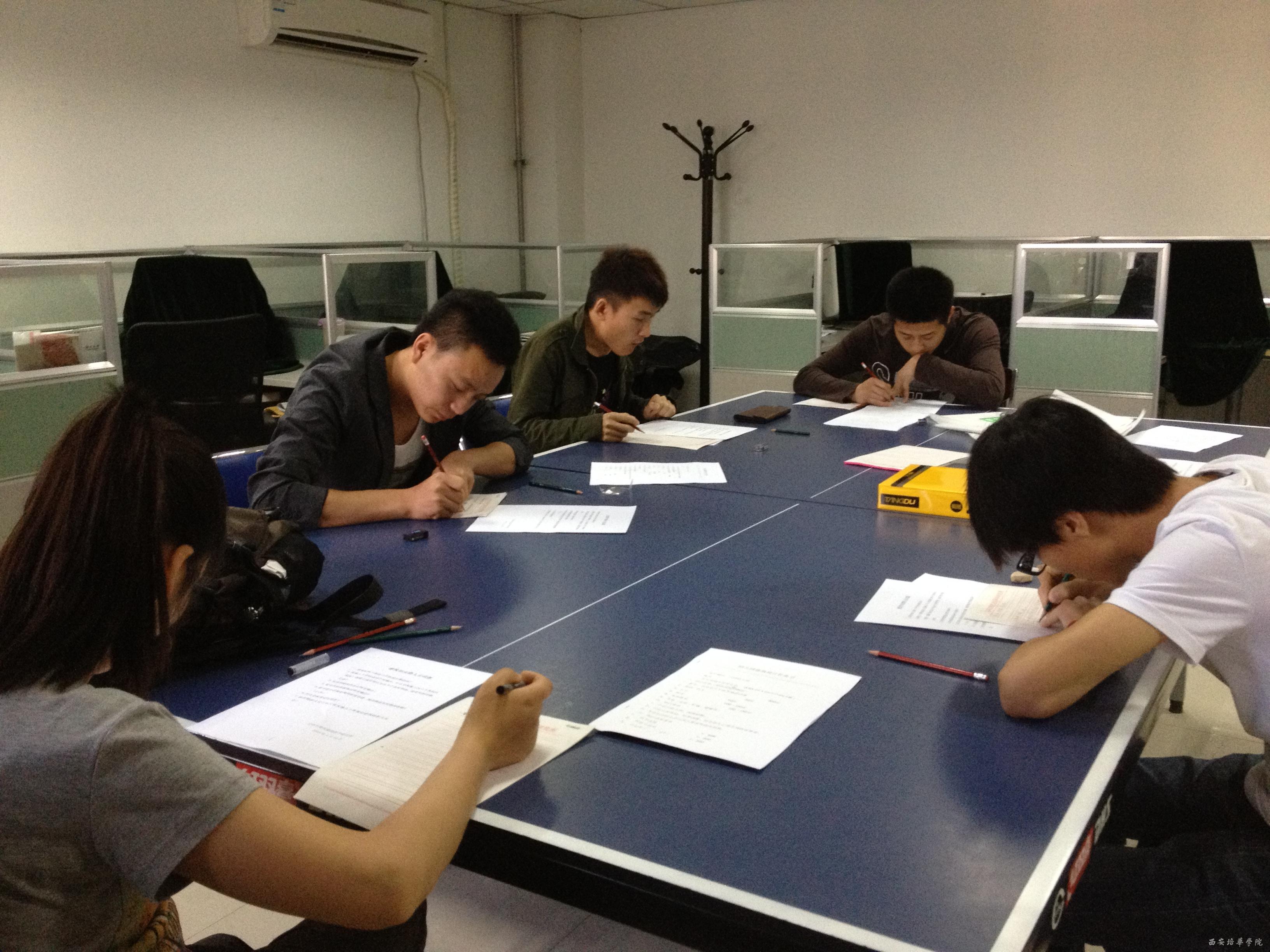 2013年5月11日,建筑工程学院这5名毕业生在辅导员的带领下来到了宝鸡市建筑科学研究所,受到了单位领导的热情欢迎。5位同学从早上10点到下午4点整整6个小时,完成了简答部分和快题部分的考核题目,研究所的所长王耀宗对学生们的答题亲自进行了检查,表示非常满意,当场决定录用这5名学生。