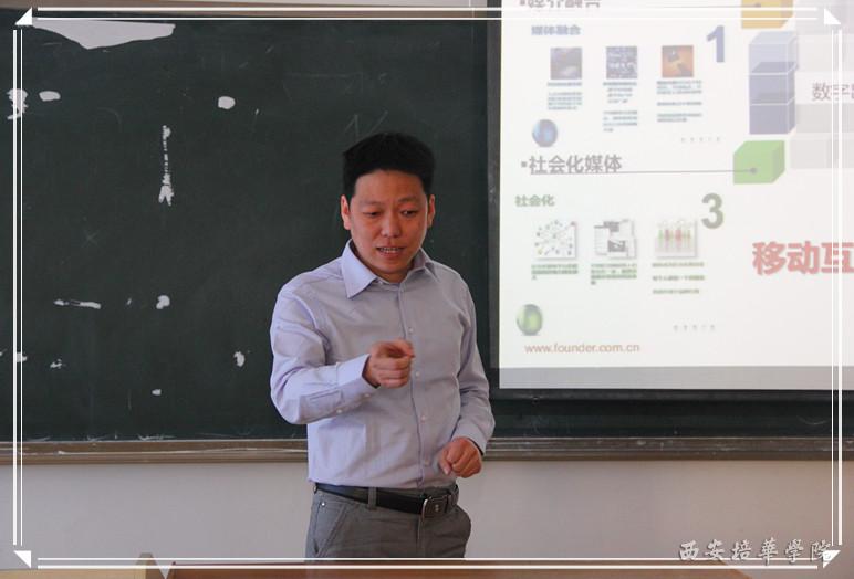 4月23日上午,北京北大方正电子有限公司数字出版业务部产品总监张林老师到我校进行了关于"移动互联网环境下的媒体人才需求"的专题讲座,同时介绍了“方正飞翔”软件在数字编辑中的应用。人文与艺术学院新闻系2011级和2012级新闻学专业的同学在2319教室聆听了本次讲座。