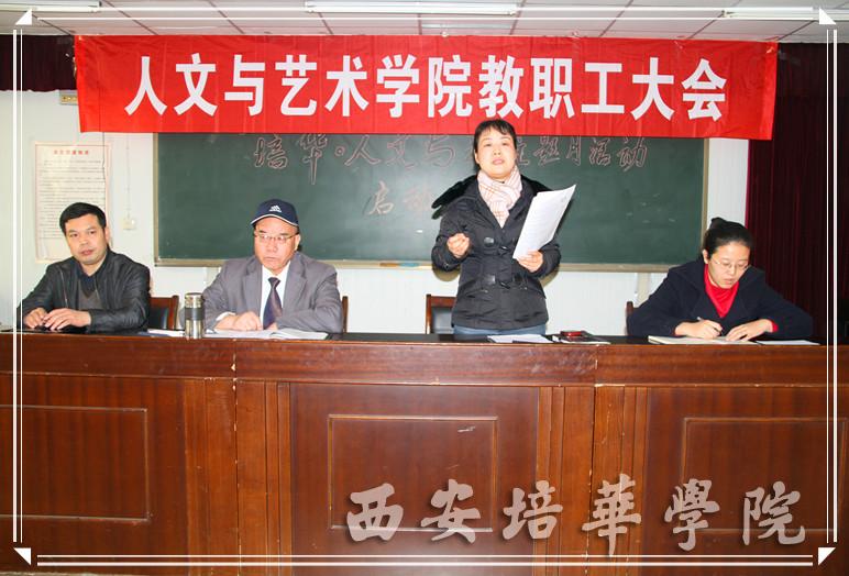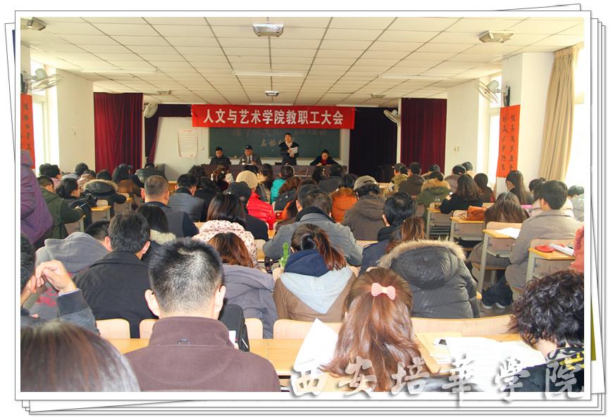 为进一步加强教学管理,规范教学行为;创建文明校园,倡导文明行为,认真做好迎评促建工作,落实姜波理事长“关于加强教学和管理工作”指示精神,11月21日,人文与艺术学院在模拟法庭召开教职工大会暨人文与艺术学院“培华•人文与我”主题月活动启动仪式。邵璐教授、车宝仁、江俊瑞,院长助理赵洁出席了会议,全院教职工参会。