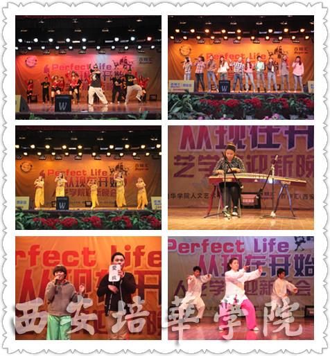 一场由我院学生自编自排带来的极具动感和青春活力的poping开场舞拉开了本届迎新晚会的序幕。本次迎新晚会共有14个精彩的节目。它涵盖了民族、流行、时尚、性感等各种元素于一体,囊括了舞蹈、歌唱、舞台剧、小品等各式形式。来自播音与主持专业的大一新生高毓以一曲热情洋溢的《Bad Boy》展示了青春的活力,掀起了本次晚会的第一轮高潮。由李爱琴处长带领学生表演的《太极拳》刚柔并济,变幻无形,同样震慑住了全场观众,在热烈的掌声中,李爱琴处长微笑谢幕。整场晚会表演形式多样,精彩连连。典雅柔美的民舞表演使人不禁联想到“一笑倾人城,再笑倾人国”的绝美;真实幽默的小品逗得场下笑声不断;刚健阳光的武术激情无限;古典优雅的古筝独奏沁人心脾。舞台剧《试戏》与乐队《自由》的表演更是展现了人文与艺术学院之风采,在场师生无不为之欢呼喝彩。