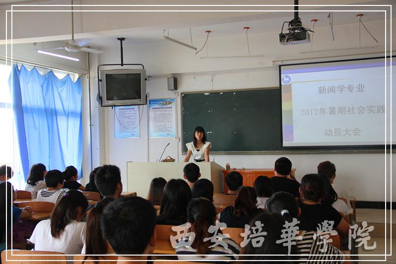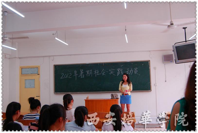 根据6月20日我校召开的关于2012年暑期社会实践活动工作会议及会上传达的《西安培华学院关于做好2012年暑期社会实践活动的通知》。6月27、28、29日,人文与艺术学院结合本院系具体情况,各系各专业在2215教室分别召开了动员大会,就暑期2010、2011级学生参加社会实践活动进行了动员安排。