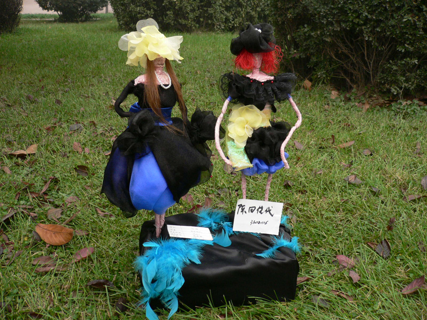 “服装人偶”作品主要介绍了服装设计的立体构成,该课程是学校的特色课程,作品展示了我校艺术教育教学成果。指导老师杨周敏向记者介绍说:“该课程培养了学生的创意能力和制作能力,学生通过制作‘服装人偶’,开动脑筋,启发创意思维,把创意设计成作品,制作过程中大家团结协作,尽其所能做出理想的造型,学习和掌握了服装与人体的关系”。