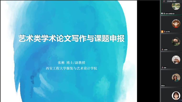 2022年11月23日,视觉传达设计专业邀请西安工程大学副教授张彬博士,就“学术论文写作与课题申报指导”等问题开展学术讲座。