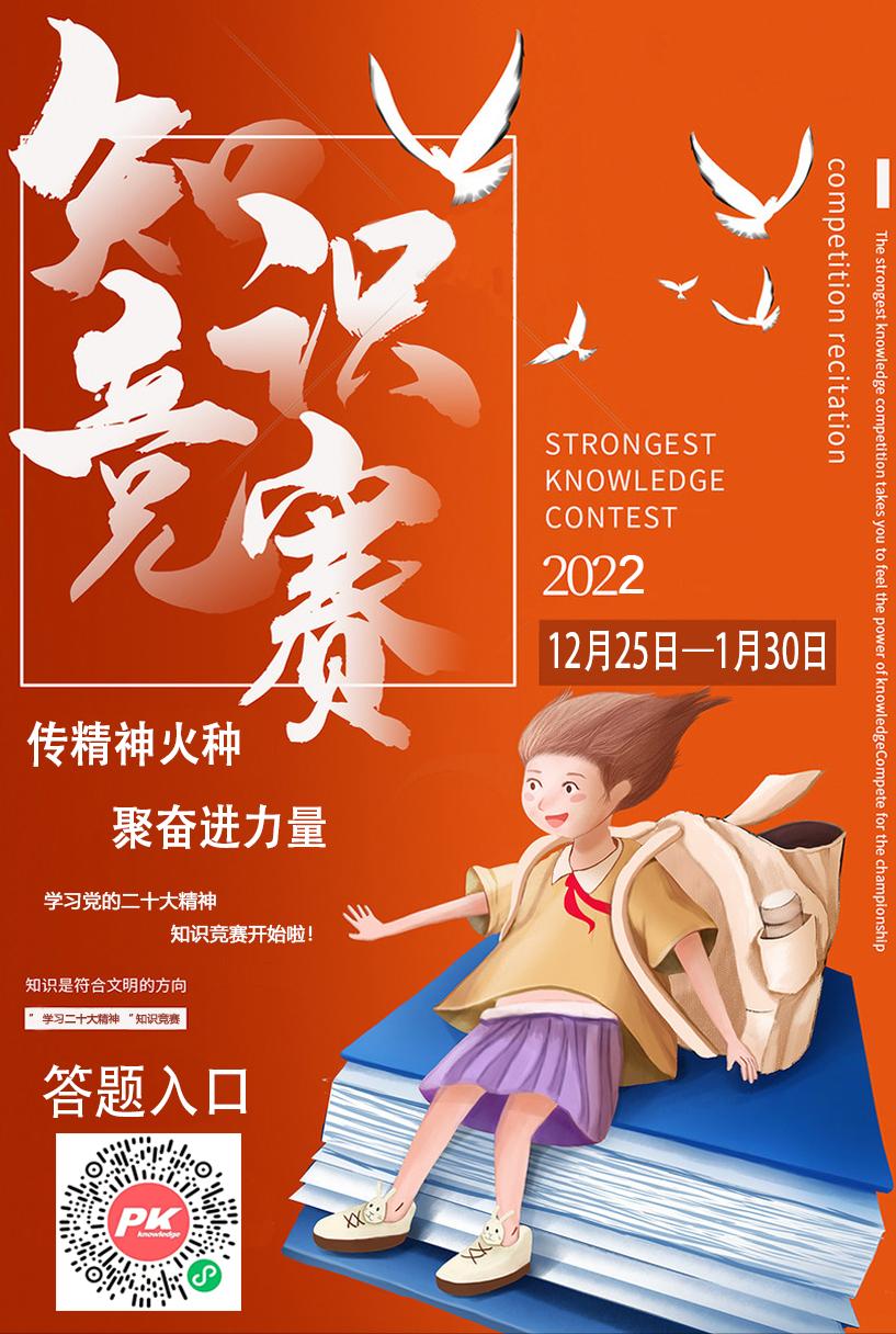 为积极响应学习党的二十大精神的号召,让党的二十大精神多维度、深层次地深入基层,走入群众,西安培华学院校团委与西安培华学院建筑与艺术设计学院团委共同承办以“学习党的二十大精神”为主题的线上网络知识竞答活动。来吧!让大家一起携手参与一场火热的知识竞赛!