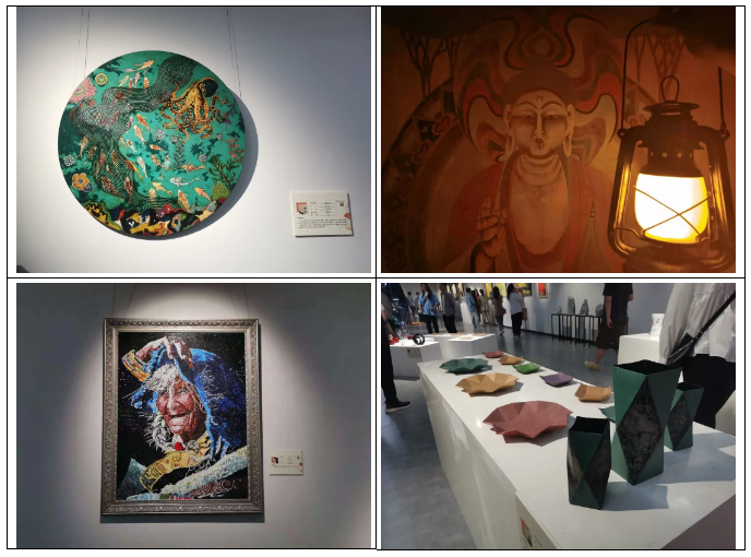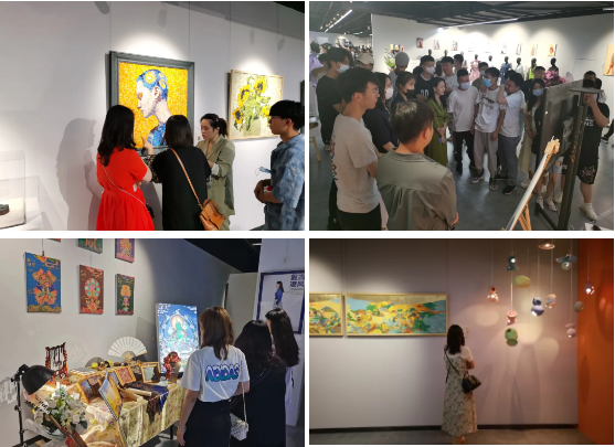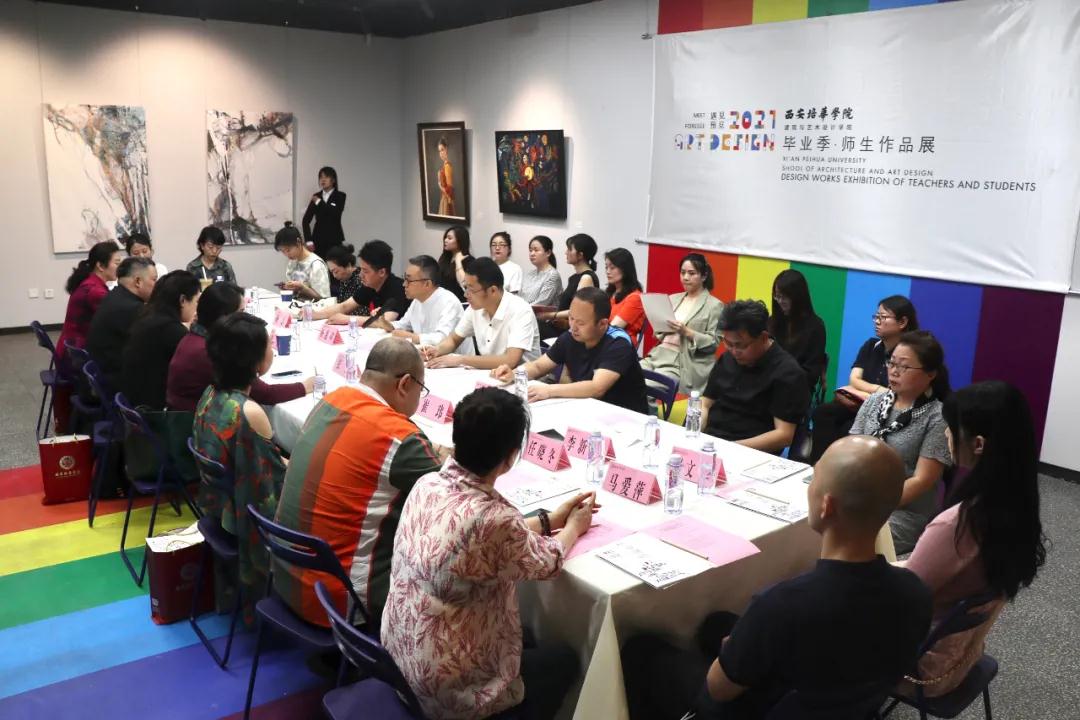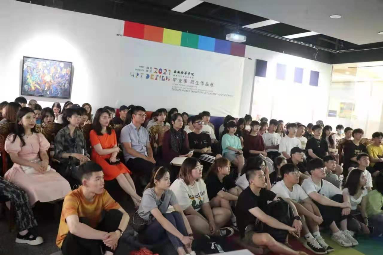 作品展开幕式结束后,在杨志老师的主持下,校内外嘉宾进行了一场学术交流会。交流会上,与会嘉宾纷纷针对自己所在学校或者所在行业畅所欲言,献言献策,就艺术专业发展,产教融合、教育课程体系、手工艺术品、乡村振兴、文化旅游等话题展开,表达自己的看法或者观点,分析了自己所在领域的局限、问题及如何破解的思路,同时大家也纷纷点赞民办院校的灵活、效率快的机制特点。