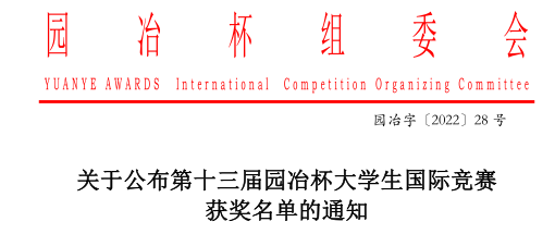 除此之外,西安培华学院建筑与艺术设计学院获得第十三届园冶杯大学生国际竞赛优秀组织奖以及先进教育集体。魏舒乐老师获得竞赛优秀联络员称号。
