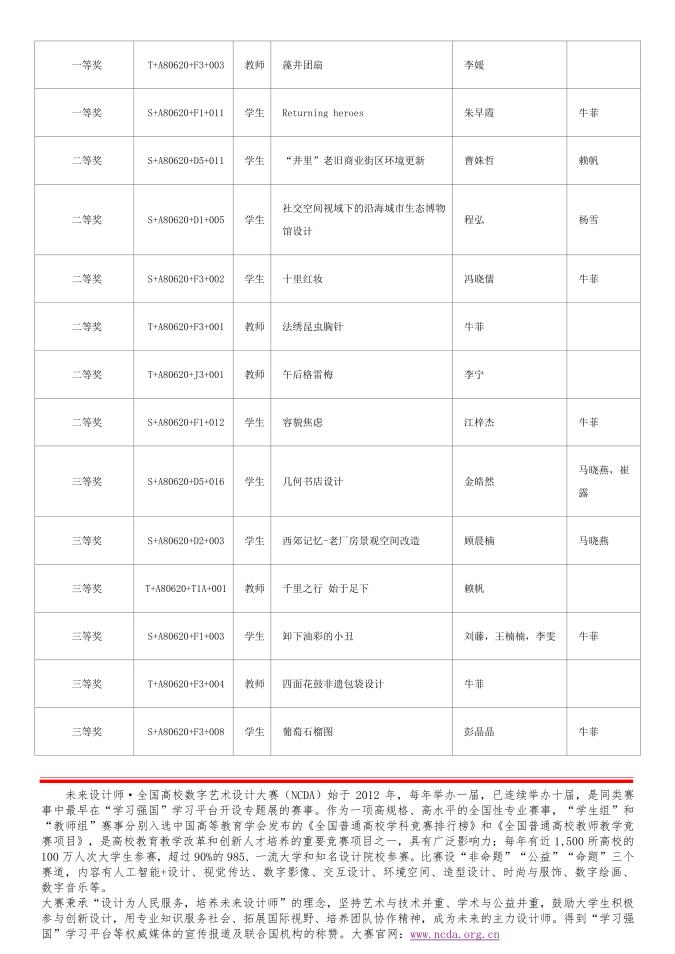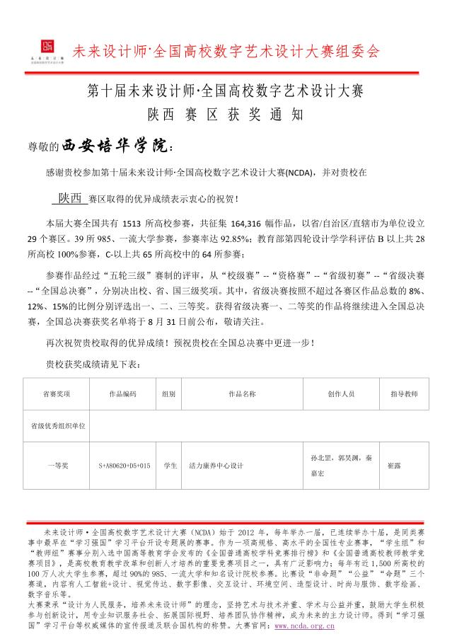 近日,第十届全国高校数字艺术设计大赛(NCDA)的评审工作已全部结束,西安培华学院建筑与艺术设计学院师生在此次大赛中表现优异,喜获佳绩。