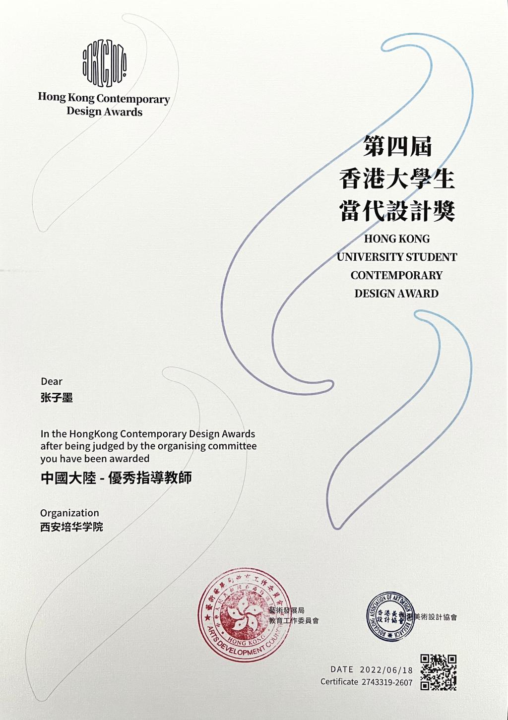 香港当代设计奖由香港艺术发展局指导,香港美术设计协会主办,赛事分为两个阶段分别为春季赛:香港大学生当代设计奖、秋季赛:香港当代设计奖,旨在通过赛事活动提高两地大学之间的艺术和设计互动,通过交流以提升设计、美术创作的整体水平。此次赛事仅面对两岸大学生进行征稿。我校师生积极响应,认真组织实施,并且取得优异成绩。