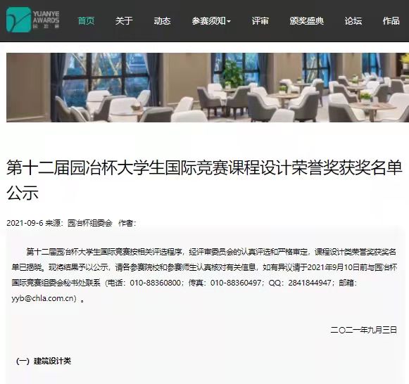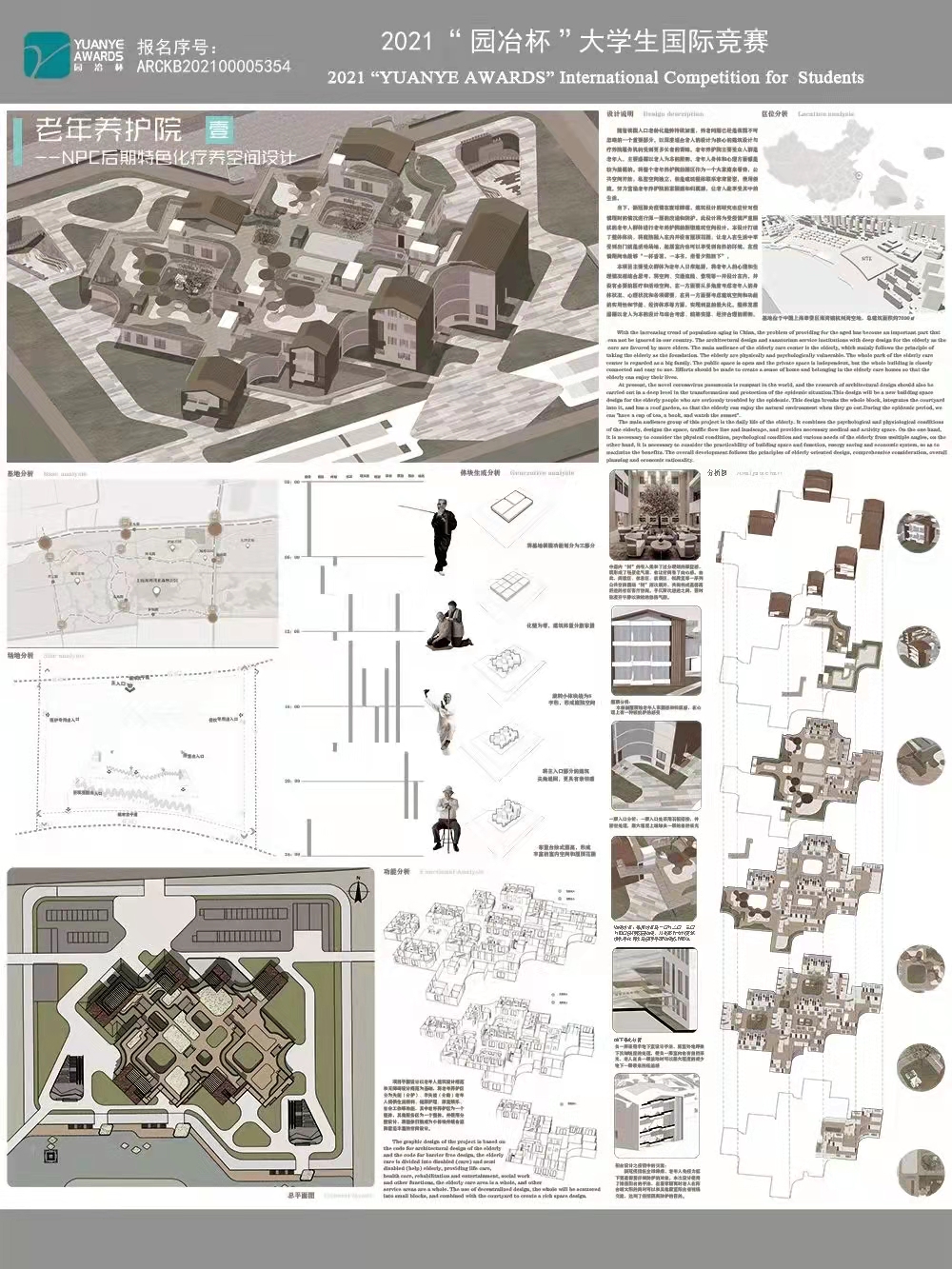 十二届“园冶杯”大学生国际竞赛评审结果近期公布,我院建筑学专业裴婕同学作品《老年养护院-NPC后期特色化疗养空间设计》(指导老师:赵艺阳、戴煜轩)喜获建筑设计方向课程设计类作品竞赛荣誉奖。