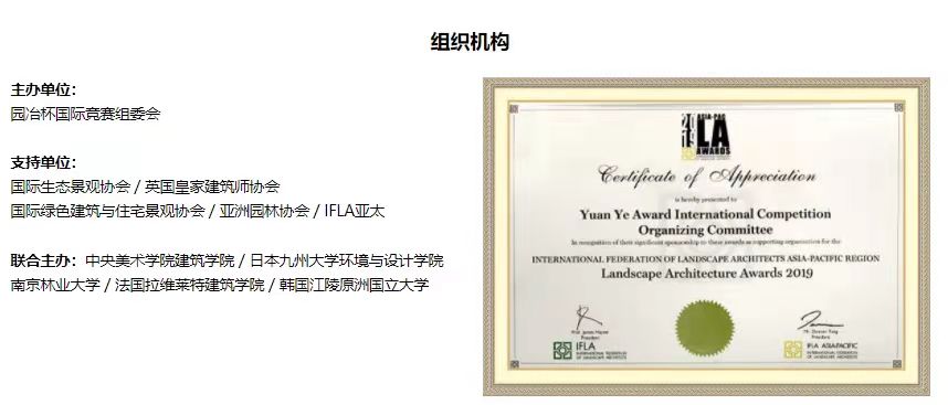 “园冶杯”是由亚洲园林协会、园冶杯风景园林国际竞赛组委会主办,中国风景园林网、世界园林杂志社委会承办的国际性风景园林设计竞赛,在行业内具有广泛的影响力。竞赛旨在为促进风景园林及建筑设计行业和谐发展,提高专业学生的创新意识及设计水平,活跃学习气氛、展示学子风采,同时为毕业生们提供一个全面展示才华和互相学习交流的平台,由北京林业大学园林学院、南京林业大学风景园林学院、华中农业大学园艺林学学院、台湾朝阳科技大学景都系及建都所、日本千叶大学园艺学部、韩国江陵大学环境造景学部和中国风景园林网发起,重庆大学建筑城规学院、同济大学建筑与城市规划学院景观学系等近二十家国内外风景园林相关专业院系联合主办,每年在风景园林相关院校毕业生中开展毕业作品和论文的评选活动,命名为“‘园冶杯’风景园林(毕业作品、论文)国际竞赛”。竞赛作品将在相关院校进行巡展宣传,在中国风景园林网做专题展示,并组织对获奖作品和论文进行编辑出版。
