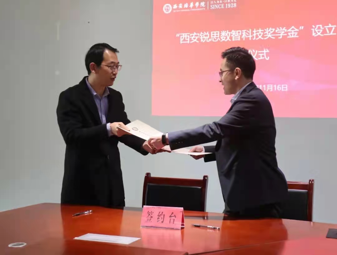 为实现校企双方资源共享,深化产教融合,11月16日上午,西安培华学院建筑与艺术设计学院与西安锐思数智科技股份有限公司(以下简称“锐思数智”)于培华学院汇知楼举行了企业奖学金设立签约仪式,并进行座谈交流。西安培华学院校长助理兼合作与发展办公室主任秦海峰、西安培华学院建筑与艺术设计学院常务副院长徐莹、党委宣传部部长校友服务与发展中心主任柳雨建筑与艺术设计学院党委书记兼行政副院长权勇太等领导及锐思数智总裁赵航、人力资源总监李敏等出席了仪式。