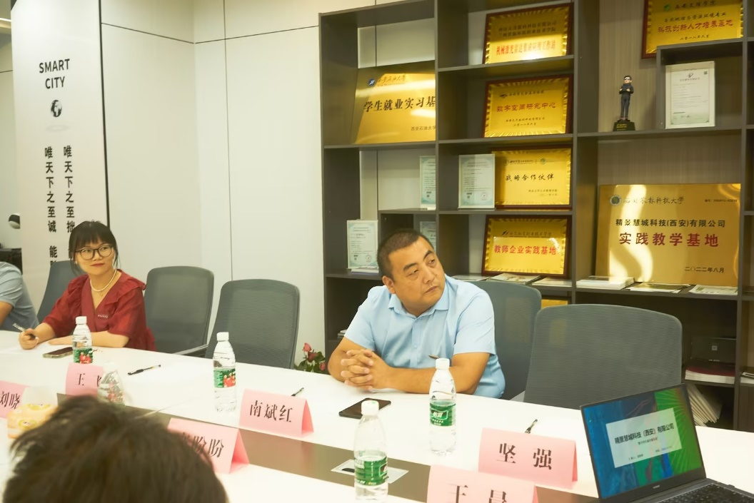 2023年7月7日下午,西安培华学院建筑与艺术设计学院党委副书记南斌红、土木工程系主任刘杰老师率队赴精景慧城科技(西安)有限公司开展参观调研。公司副总经理刘晓建、总经理助理林沁、销售经理寇盼盼,技术总监王晨对西安培华学院建筑与艺术设计学院领导一行来公司参观调研表示欢迎。