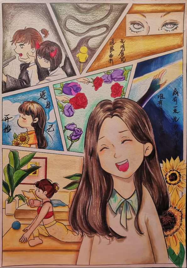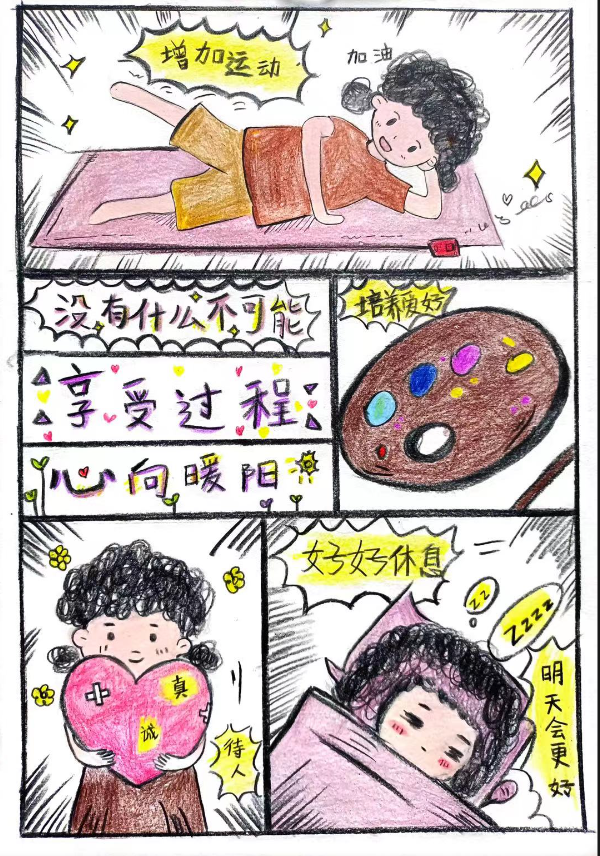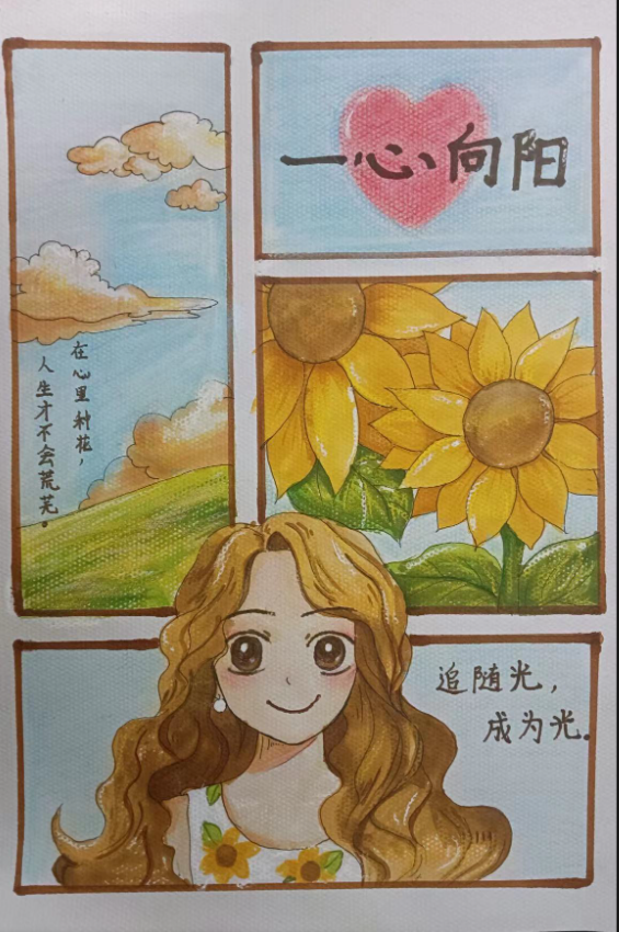 为丰富大学生在校生活,将大学生的身边小事和所学专业创作紧密集合,建筑与艺术设计学院学生潜能发展辅导站以心理漫画的艺术表现形式鼓励大学生将生活中的心理活动、生活体验及内心感悟形象地展现出来,诠释心理健康理念,普及心理健康知识,激发大学生百折不挠的心理韧性,塑造大学生踔厉奋发的意志品质。“吾画吾心,一心向阳”心理漫画征集活动圆满落幕,让我们看一看获奖作品吧!
