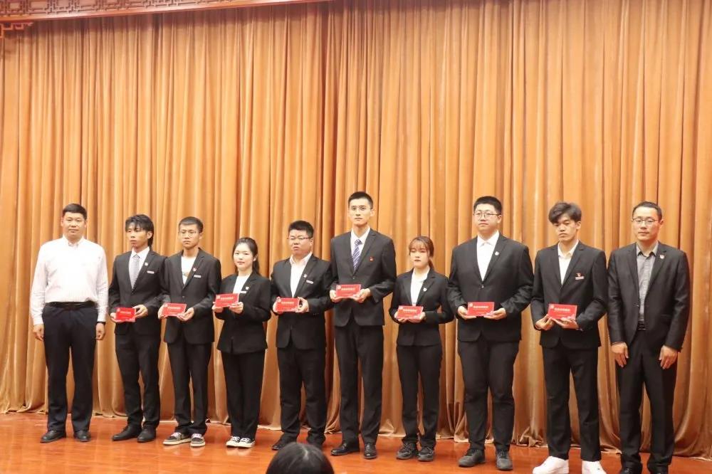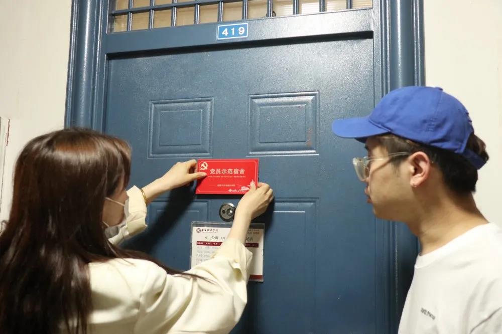西安培华学院党委委员、学工部部长、学生服务中心主任蔡亮、建筑与艺术设计学院党委书记权勇太为党员宿舍代表授牌