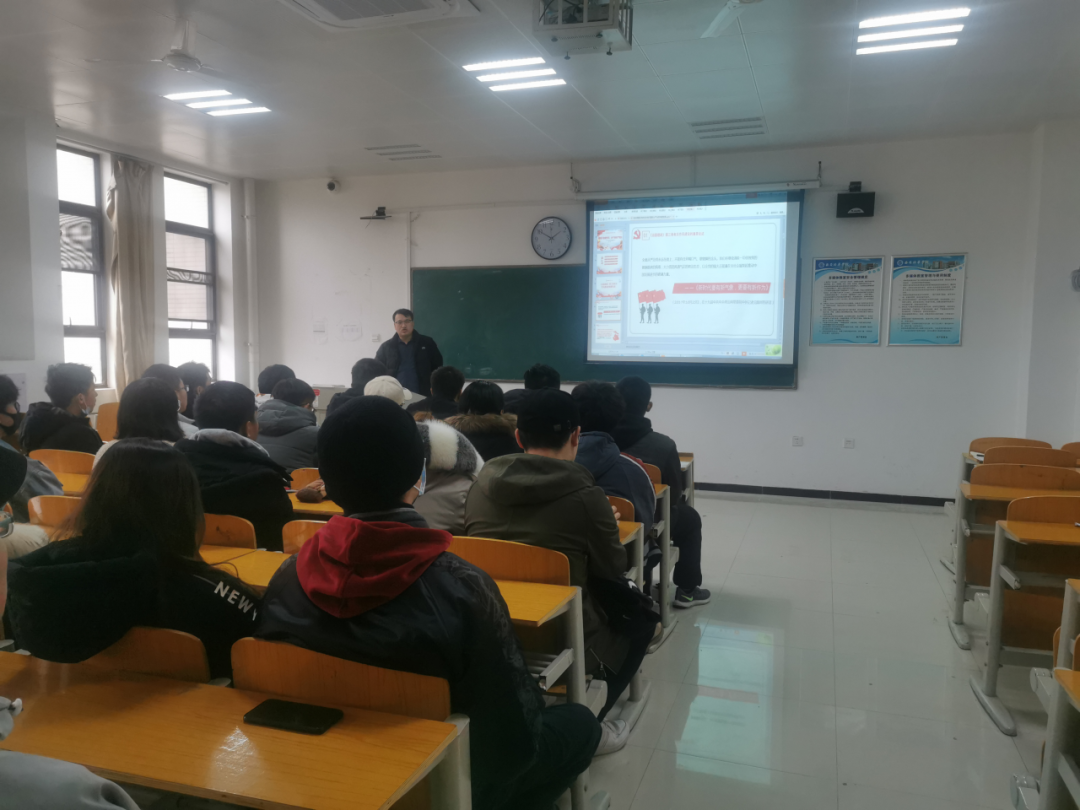 2020年11月22日,学生第二党支部书记赵煜柠组织学生第二党支部毕业年级的学生,以《学习先进典型,汲取榜样力量》为主题进行党课讲授。