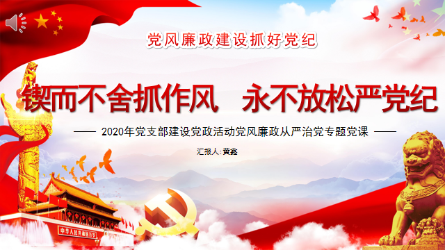 黄老师首先介绍了《治国理政》第三卷有关作风建设的重要论述:“全面从严治党永远在路上,不能有任何喘口气、歇歇脚的念头。我们将继续清除一切侵蚀党的健康肌体的病毒,大力营造风清气正的政治生态,以全党的强大正能量在全社会凝聚起推动中国发展进步的磅礴力量”。