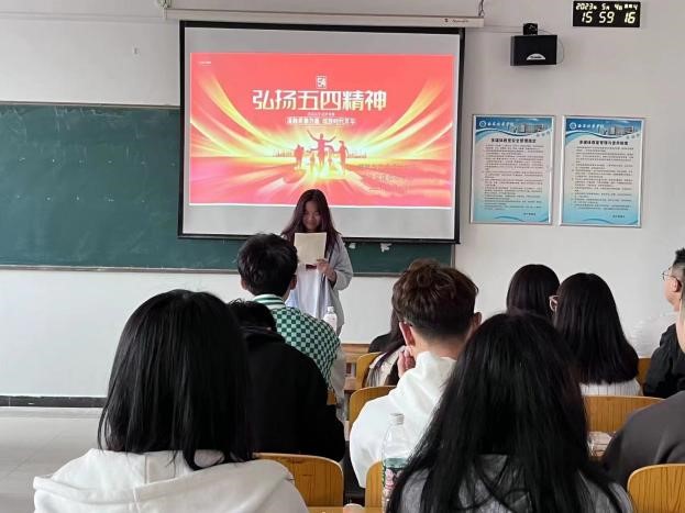 火红五月,青春飞扬,沐浴着中国特色社会主义新时代的春风,我们在贯彻落实党的二十大精神开局之年迎来了“五四”运动104周年,也迎来了第74个“五四”青年节。为深入学习贯彻习近平新时代中国特色社会主义思想和党的二十大精神,讴歌老一辈无产阶级革命家追寻真理、留学报国、奉献家国的爱国主义精神,引导广大青年传承五四精神,赓续红色血脉,汲取奋进力量,在“五四”青年节期间,建筑与艺术设计学院党委在汇知楼6403教室开展了“蓬勃青春力量,绽放时代芳华”主题经典诵读活动。