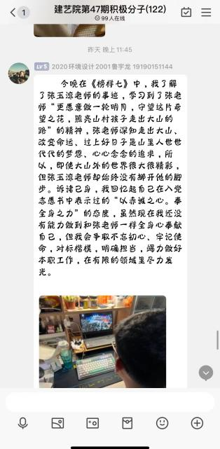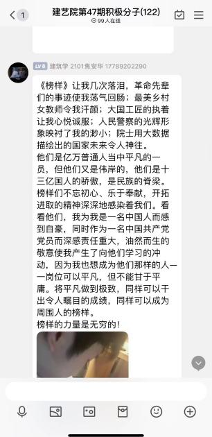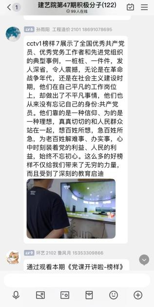 为深入学习贯彻习近平新时代中国特色社会主义思想和党的二十大精神,充分发挥先进典型示范引领作用,大力宣传党的二十大代表的先进事迹,教育引导广大党员干部学习榜样、争当先进、担当作为、建功立业,2023年3月25日晚,建筑与艺术设计学院党委组织全体党员积极观看了专题节目《榜样7》。