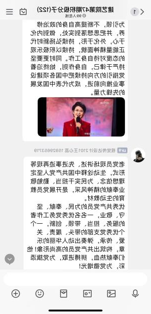 史素梅:通过典型事迹展示、现场访谈、重温入党誓词等形式,生动展现中国共产党人坚定信念、践行宗旨、拼搏奉献、廉洁奉公的高尚品质和精神风范,彰显基层党组织战斗堡垒作用和党员先锋模范作用,是我们学习的榜样,他们在平凡的岗位上展示着党员的魅力,传递党员的正能量,我深深的感动折服,并感受到了精神上的洗礼。