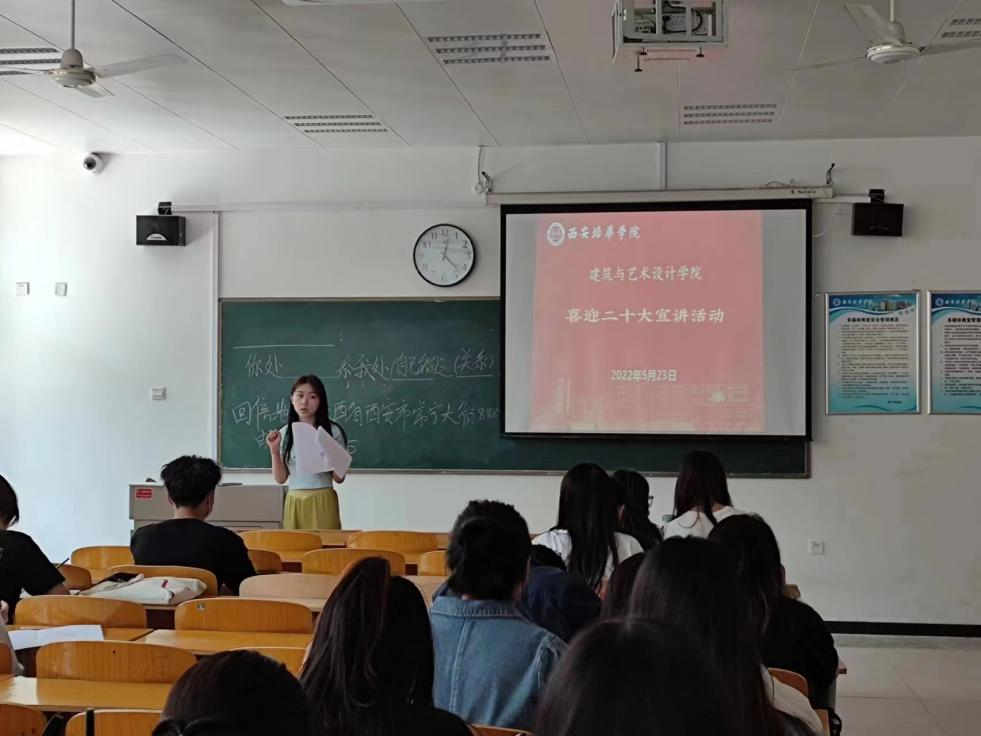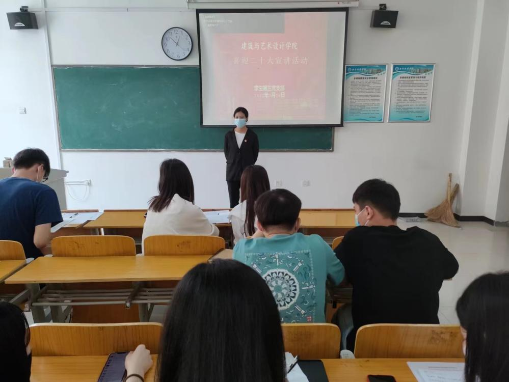 活动开始,建筑与艺术设计学院党务行政干事李鲁媛谈到,2022年是中国共产党召开二十大的喜庆之年,为宣传爱党爱国爱社会主义教育,落实每一个学生、中共党员自觉将“学党史、知党情、跟党走”的理念践行到日常学习中,用青春呐喊出“请党放心 强国有我”的铮铮誓言,我院开展主题宣讲活动。