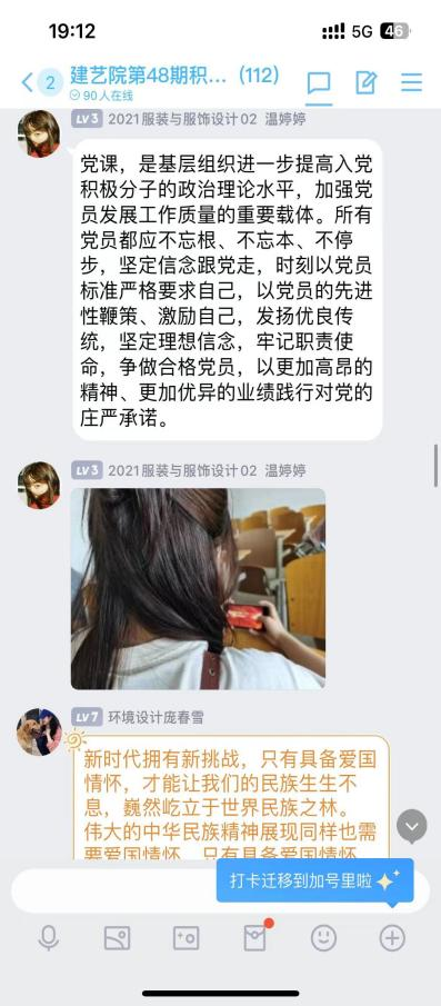 积极分子 逮宇杰: 我们是肩负建设祖国重任的新一代大学生,我们在努力学习好科学文化知识、提高实践操作能力的同时,也要关注时事、关注社会的发展,只有把理论与实践相结合,才会在实践中发挥功效。同时,也应把个人情况与社会现状相结合,努力探索适合自己发展的道路。这次党课,使我更加明白了自己的奋斗目标,也意识到了自己肩负的重任,最重要的是,微党课激发了我加入党组织的热情和意愿。通过微党课,我更加深入地了解了党的纲领、宗旨和党的奋斗目标。
