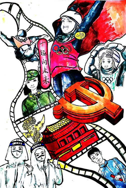 作品介绍:中国青年不论是在生活中,还是赛场上,又或是战场上,都用他们爱国的情怀、神勇的表现、突破的状态,向全世界展示着热情开朗、包容前进。相信在崭新的篇章中、奋斗的长卷里,中国青年将继续保持劲头、集聚力量,在党的伟大领导下,一起向着更加美好的未来前进!