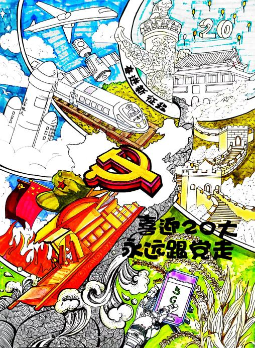 作品名称:喜迎二十大,永远跟党走,奋进新征程