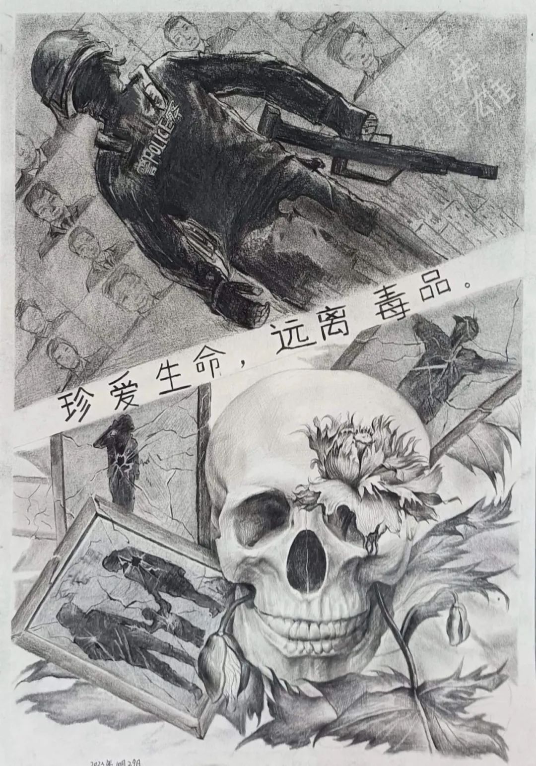 生命,是一朵鲜艳美丽的花朵;生命,是一条绚丽多彩的彩虹;生命,是一首悦耳动听的交响曲。然而,一旦跟一种“可怕的东西”沾染上半点关系,它就会变得黯然失色。为了使在校大学生成为有知识有文化的青年,具有明辨是非的能力,珍爱生命,掌握一定的禁毒防毒知识,增强防御毒品的能力,向大家全面宣传禁毒的意义,建筑与艺术设计学院党委举办禁毒海报征集活动,共收到学生组参赛作品60余幅,经过评审老师们的层层筛选,共赛出:一等奖一名,二等奖二名,三等奖五名,优秀奖六名,现在让我们一起欣赏一下大家的优秀作品吧!