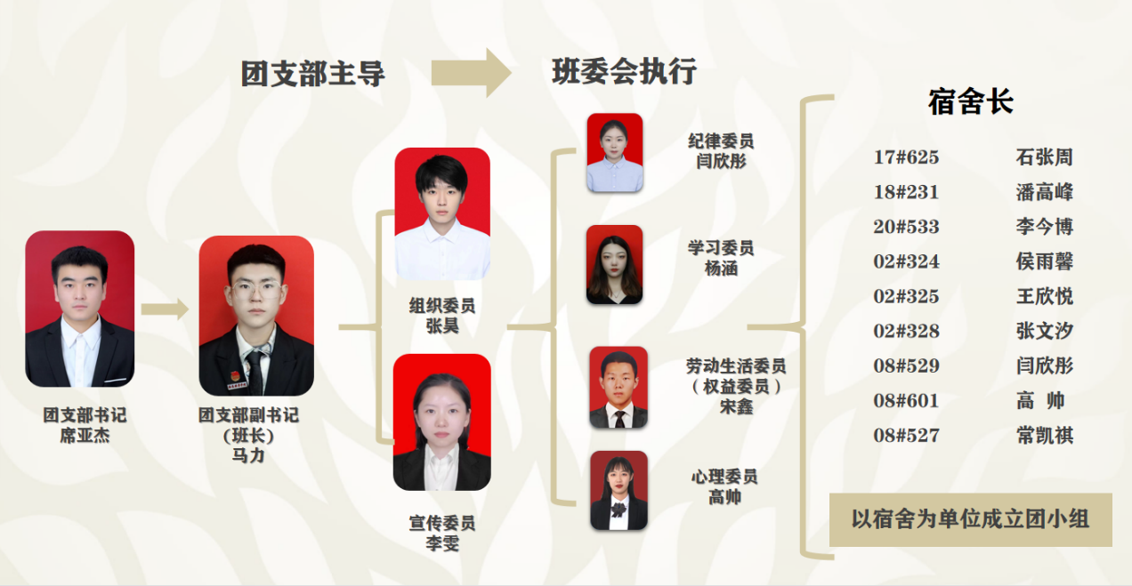 利用班团一体化建设,保障管理高效:“班团一体化”,即“班级和团支部一体化运行”。通过创新机制,聚焦政治建设、形成协同效力,将二者的工作目标、管理机制、班团活动、管理评价等方面有机结合,形成以“党支部领导、团支部主导、班委会执行”的一体化工作机制。