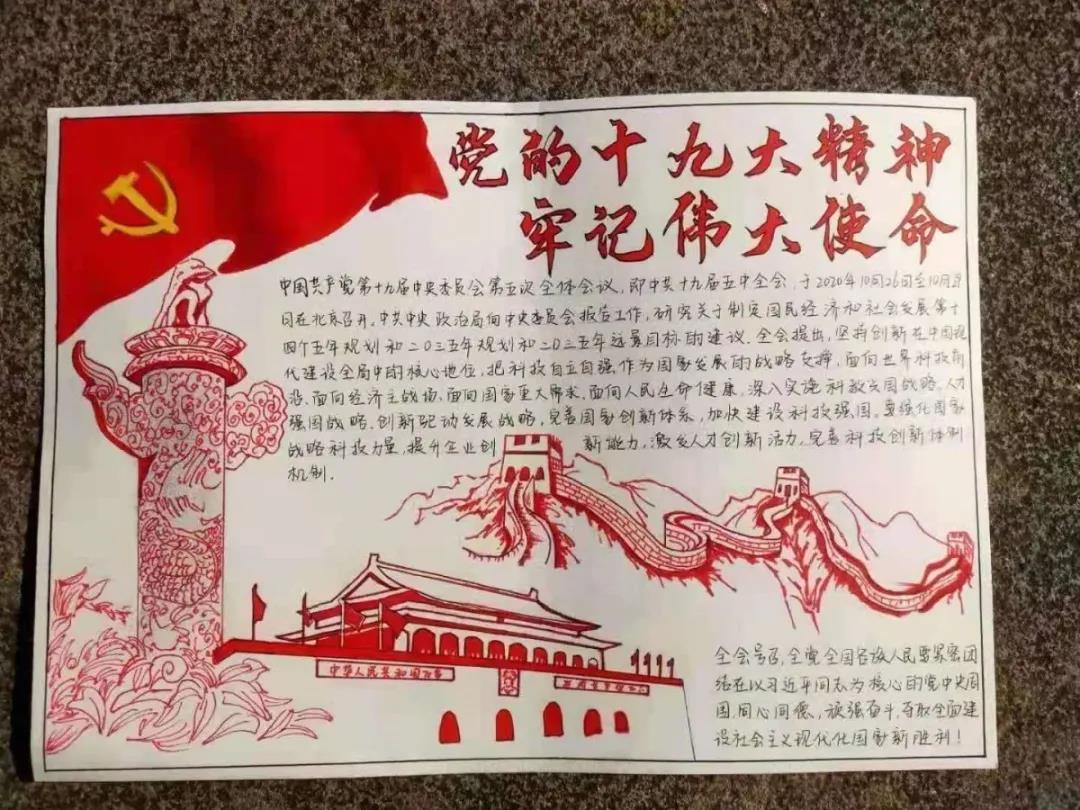 为了使同学们对此次活动具有更深层面的理解,为此我院在前期做了以下准备工作:1.开展主题团课,并在课后通过此次团课内容举行知识竞赛;2.各班级团支部开展“学习会议精神,牢记伟大使命”主题团课并绘制手抄报;3.“十九届五中全会会议精神”手抄报大赛。