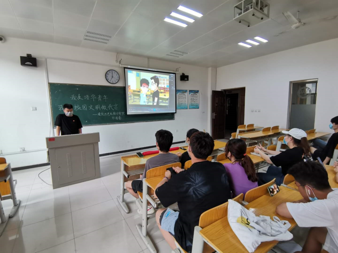 建筑与艺术设计学院团委于6月12日在汇知楼6416教室举行了“我是团员我承诺,校园文明我先行”活动,本次活动由视觉传达设计1901班吕建聪同学主持。