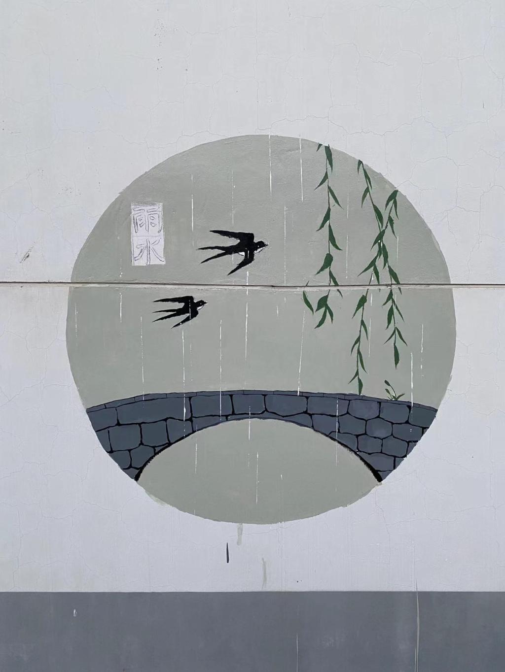 和着蓝天白云,伴着狂风暴雨,队员们保持着高度的热情,投入到乡村振兴的墙体绘制中。依托专业所学,用专业视角与审美,助力做好乡村美化,也用二十四节气的图画形式,向老乡们展示着中华传统文化以及其中蕴含的智慧在我国农耕中焕发的活力与意义。