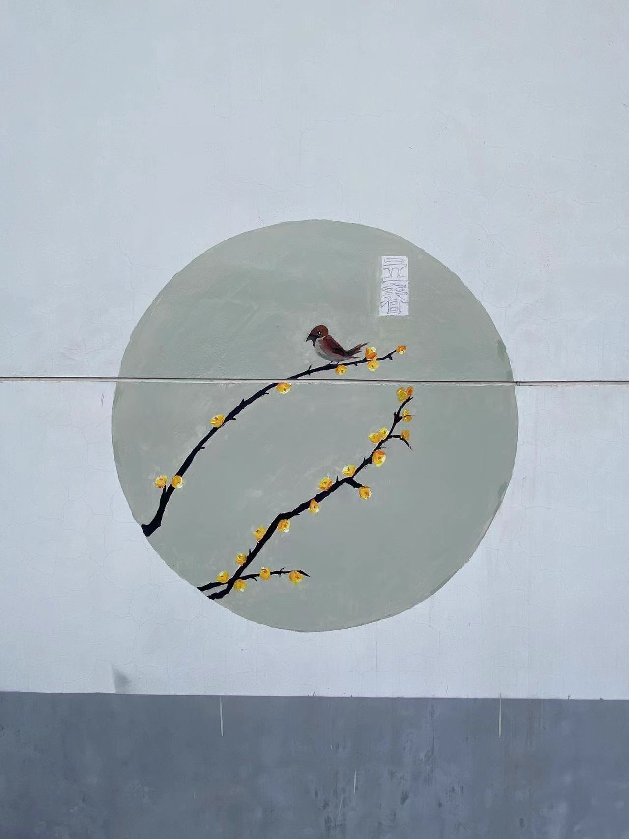 队员们深入学习二十四节气的内涵、资料,实地考察并确认绘画位置、高度、墙体状况,做好前期准备与绘画设计。翌日清晨,队员们便顶着太阳,怀抱满腔热情投入到了墙绘中,用画笔描绘乡村色彩,用青春助力乡村振兴。